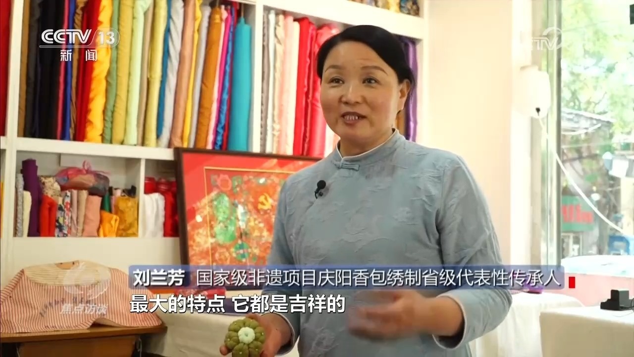 今年59歲的劉蘭芳是國(guó)家級(jí)非遺項(xiàng)目甘肅慶陽(yáng)香包繡制省級(jí)代表性傳承人。她和繡娘們正在用最古老的針?lè)āI絀,繡制一批新設(shè)計(jì)的造型香包。