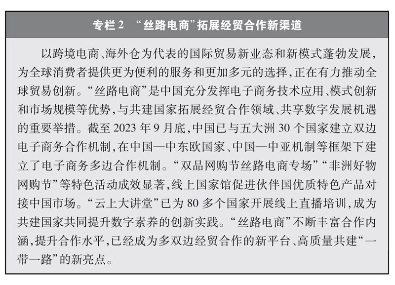 “數(shù)字絲綢之路”建設(shè)亮點紛呈。共建國家加強(qiáng)數(shù)字領(lǐng)域的規(guī)則標(biāo)準(zhǔn)聯(lián)通,推動區(qū)域性數(shù)字政策協(xié)調(diào),攜手打造開放、公平、公正、非歧視的數(shù)字發(fā)展環(huán)境。截至2022年底,中國已與17個國家簽署“數(shù)字絲綢之路”合作諒解備忘錄,與30個國家簽署電子商務(wù)合作諒解備忘錄,與18個國家和地區(qū)簽署《關(guān)于加強(qiáng)數(shù)字經(jīng)濟(jì)領(lǐng)域投資合作的諒解備忘錄》,提出并推動達(dá)成《全球數(shù)據(jù)安全倡議》《“一帶一路”數(shù)字經(jīng)濟(jì)國際合作倡議》《中國-東盟關(guān)于建立數(shù)字經(jīng)濟(jì)合作伙伴關(guān)系的倡議》《中阿數(shù)據(jù)安全合作倡議》《“中國+中亞五國”數(shù)據(jù)安全合作倡議》《金磚國家數(shù)字經(jīng)濟(jì)伙伴關(guān)系框架》等合作倡議,牽頭制定《跨境電商標(biāo)準(zhǔn)框架》。積極推進(jìn)數(shù)字基礎(chǔ)設(shè)施互聯(lián)互通,加快建設(shè)數(shù)字交通走廊,多條國際海底光纜建設(shè)取得積極進(jìn)展,構(gòu)建起130套跨境陸纜系統(tǒng),廣泛建設(shè)5G基站、數(shù)據(jù)中心、云計算中心、智慧城市等,對傳統(tǒng)基礎(chǔ)設(shè)施如港口、鐵路、道路、能源、水利等進(jìn)行數(shù)字化升級改造,“中國-東盟信息港”、“數(shù)字化中歐班列”、中阿網(wǎng)上絲綢之路等重點項目全面推進(jìn),“數(shù)字絲路地球大數(shù)據(jù)平臺”實現(xiàn)多語言數(shù)據(jù)共享??臻g信息走廊建設(shè)成效顯著,中國已建成連接南亞、非洲、歐洲和美洲的衛(wèi)星電信港,中巴(西)地球資源系列遙感衛(wèi)星數(shù)據(jù)廣泛應(yīng)用于多個國家和領(lǐng)域,北斗三號全球衛(wèi)星導(dǎo)航系統(tǒng)為中歐班列、船舶海運等領(lǐng)域提供全面服務(wù);中國與多個共建國家和地區(qū)共同研制和發(fā)射通信或遙感衛(wèi)星、建設(shè)衛(wèi)星地面接收站等空間基礎(chǔ)設(shè)施,依托聯(lián)合國空間科技教育亞太區(qū)域中心(中國)為共建國家培養(yǎng)大量航天人才,積極共建中海聯(lián)合月球和深空探測中心、中阿空間碎片聯(lián)合觀測中心、瀾湄對地觀測數(shù)據(jù)合作中心、中國東盟衛(wèi)星應(yīng)用信息中心、中非衛(wèi)星遙感應(yīng)用合作中心,利用高分衛(wèi)星16米數(shù)據(jù)共享服務(wù)平臺、“一帶一路”典型氣象災(zāi)害分析及預(yù)警平臺、自然資源衛(wèi)星遙感云服務(wù)平臺等服務(wù)于更多共建國家。