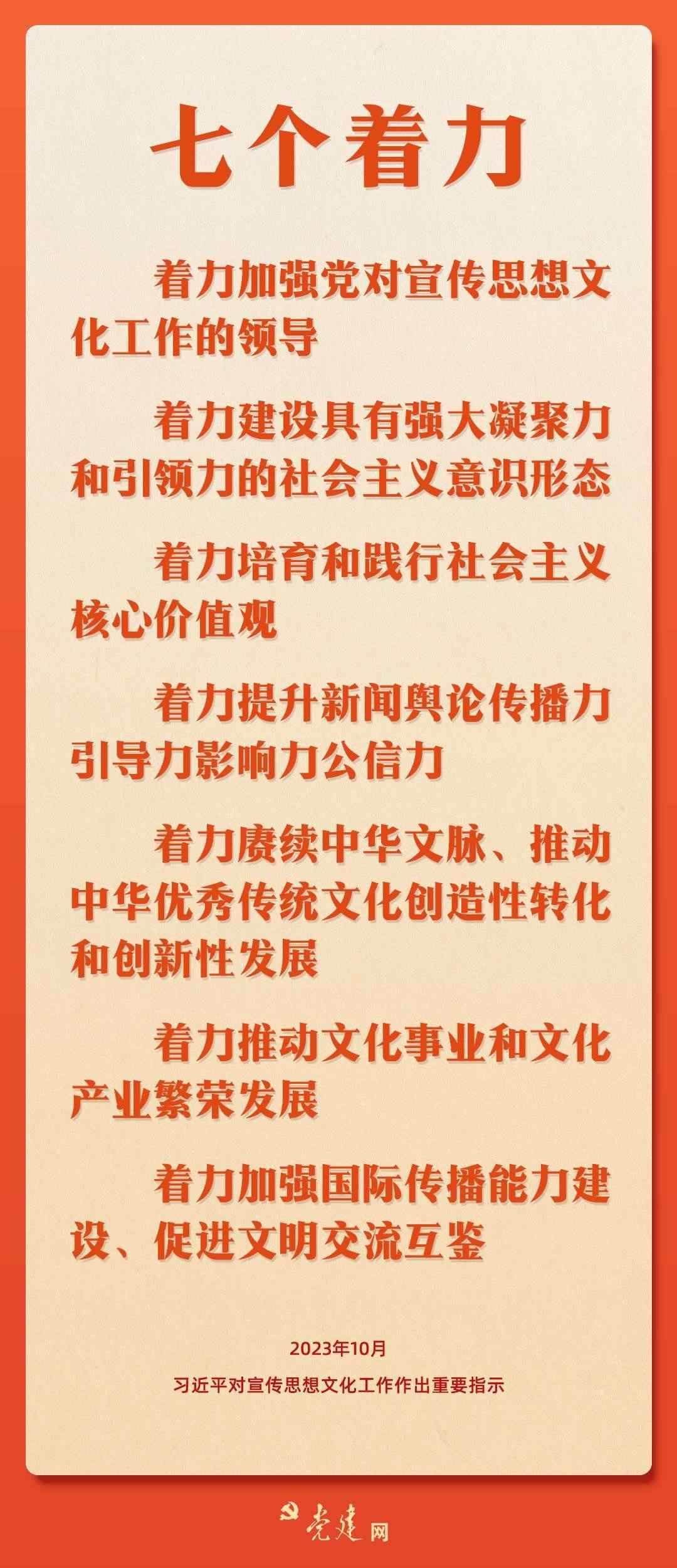 10月7日至8日,全國宣傳思想文化工作會議在京召開。會議傳達(dá)了習(xí)近平總書記對宣傳思想文化工作的重要指示,并首次提出習(xí)近平文化思想??靵硪粓D學(xué)習(xí)會議精神要點!