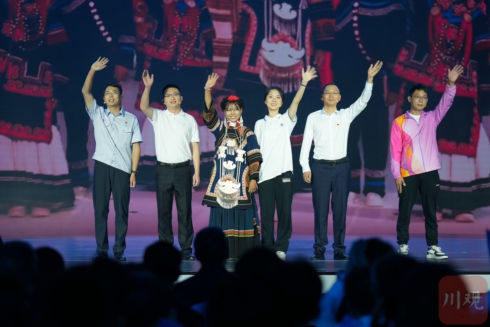 在 “錦水含章”篇章中,以歌曲《紅梅贊》引入,《江姐在川大》編劇冉詩媛、四川大學(xué)“江姐班”學(xué)生代表張鈺、“江姐紀(jì)念館”設(shè)計(jì)者段禹農(nóng)、第49屆南丁格爾獎獲得者蔣艷和四川大學(xué)三星堆遺址考古隊(duì)隊(duì)長黎海超等結(jié)合工作學(xué)習(xí)實(shí)踐,動情講述傳承江姐精神矢志報(bào)國、援外抗疫展現(xiàn)大愛、創(chuàng)新賦能文博考古故事,生動詮釋紅色傳承、文脈賡續(xù)、人民至上。