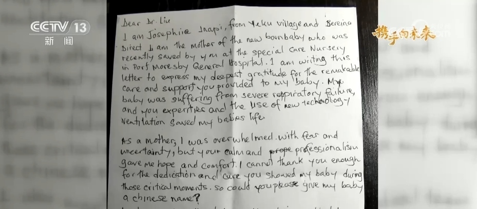 隨著呼吸機開始正常運轉(zhuǎn),患兒的重要生命體征也重回正常范圍內(nèi)??吹胶⒆用撾x呼吸機的那一刻,患兒母親喬瑟菲·伊奈皮握著劉振球的手不停說謝謝。事后,她專門寫了一封信表達自己的感激之情。她在信中說:“作為一個母親,我被恐懼和不確定所淹沒,但你的鎮(zhèn)靜和專業(yè)給了我希望和安慰。我要感謝整個中國醫(yī)療隊來到巴布亞新幾內(nèi)亞?!边@次中國醫(yī)生成功挽救巴新新生兒的事跡,迅速在當?shù)匾饛娏曳错懀托露嗉抑髁髅襟w進行了廣泛報道。