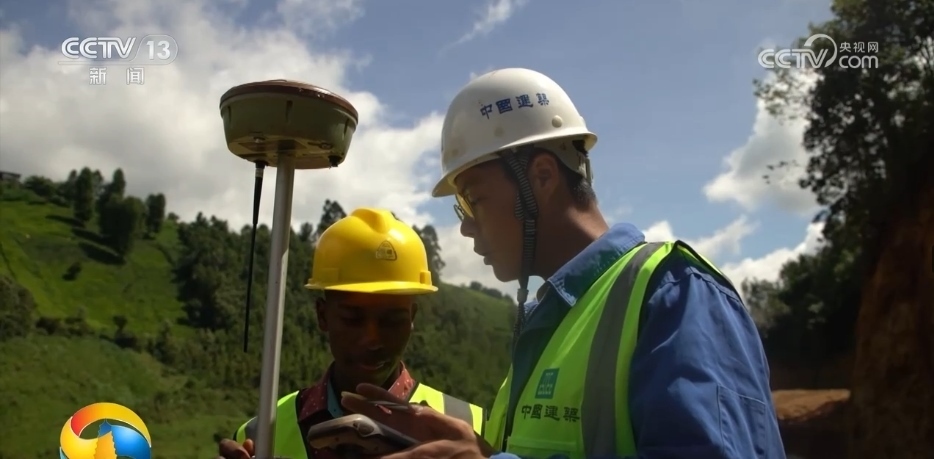 這里是肯尼亞南部高原上的錫卡鎮(zhèn)基戈羅村,施工團(tuán)隊(duì)正在鋪設(shè)供水管線,將壩區(qū)的水引入內(nèi)羅畢城區(qū),解決首都近300萬人的用水問題。正在進(jìn)行測(cè)量工作的中國(guó)工程師叫于春雨,旁邊的肯尼亞小伙子是他的徒弟叫王約翰。