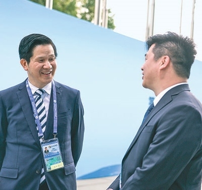 10月17日,參加“一帶一路”企業(yè)家大會(huì)的代表在交談。本報(bào)記者 蔣雨師攝