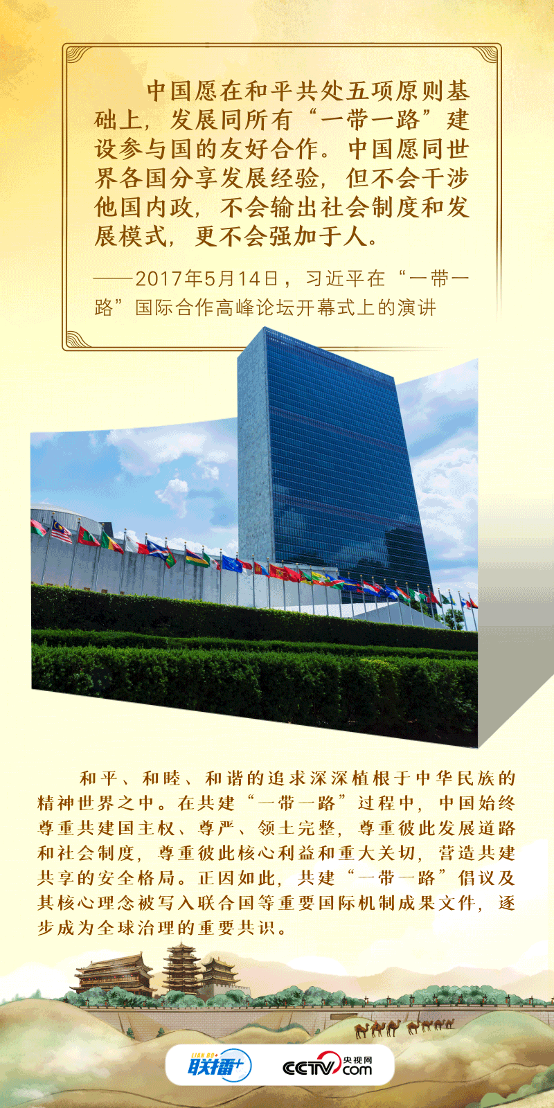 “古絲綢之路綿亙?nèi)f里、延續(xù)千年,積淀了以和平合作、開(kāi)放包容、互學(xué)互鑒、互利共贏為核心的絲路精神。”2017年,習(xí)近平主席在首屆“一帶一路”國(guó)際合作高峰論壇開(kāi)幕式上系統(tǒng)闡述了絲路精神的內(nèi)涵,倡議將“一帶一路”建成和平之路。
