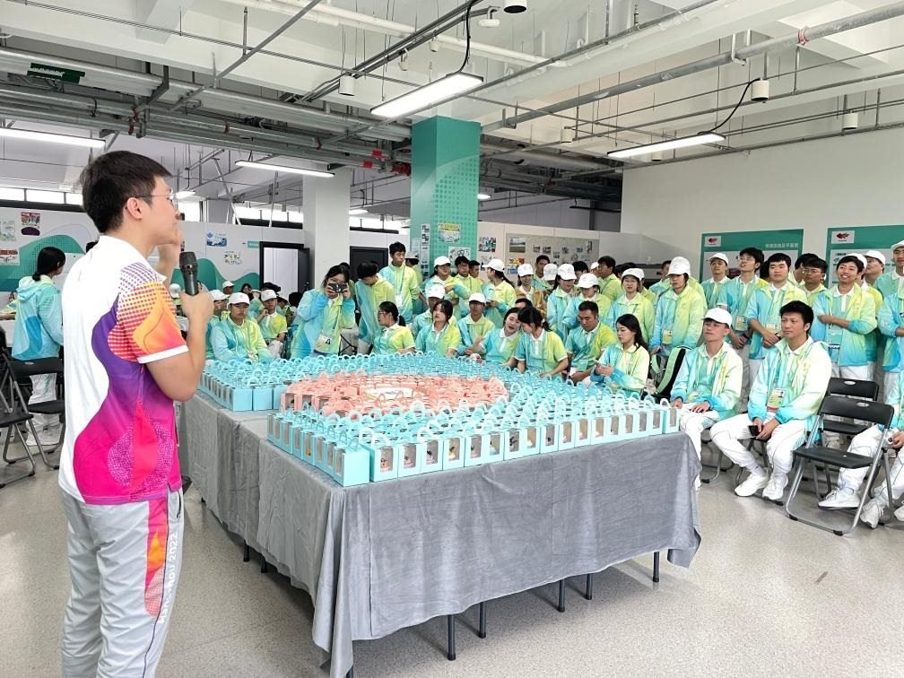 在富陽水上運動中心,和他一樣參加杭州亞運會和亞殘運會志愿服務工作的同學還有300多名。因與“親和”諧音而被稱作“小青荷”的志愿者們,身著白綠相間的統(tǒng)一服裝,在青山綠水間上演著“小荷才露尖尖角”。