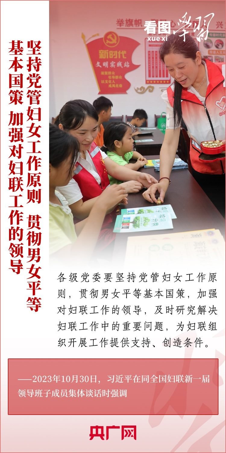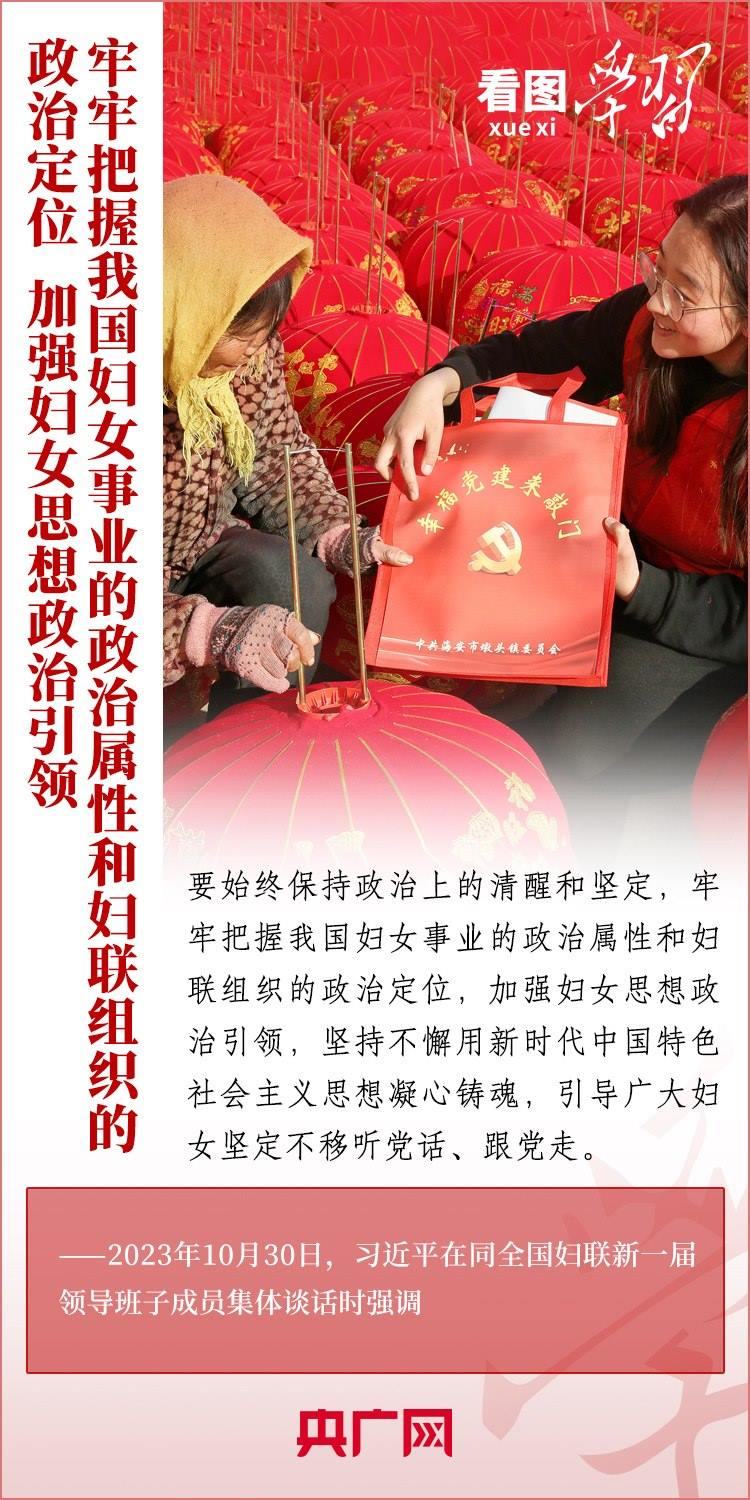 10月30日下午,習(xí)近平總書記同全國婦聯(lián)新一屆領(lǐng)導(dǎo)班子成員集體談話并發(fā)表重要講話??倳洀?qiáng)調(diào),要堅定不移走中國特色社會主義婦女發(fā)展道路,激勵廣大婦女自尊自信、自立自強(qiáng),奮進(jìn)新征程、建功新時代,為中國式現(xiàn)代化建設(shè)貢獻(xiàn)巾幗智慧和力量。一起來學(xué)習(xí)!