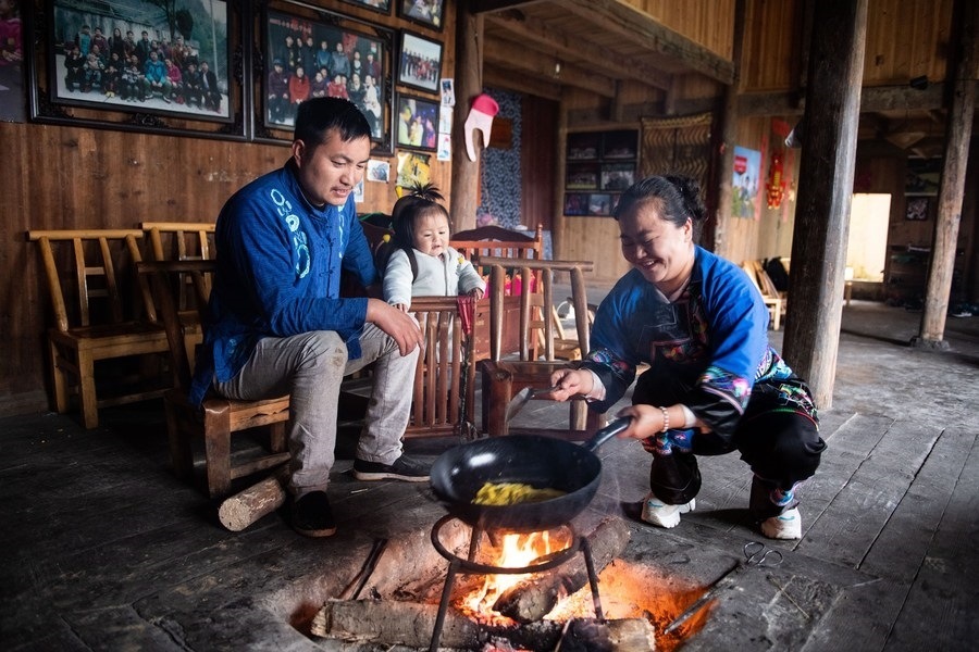 在湖南湘西十八洞村,龍先蘭一家在做早餐(2021年4月16日攝)。新華社記者 陳思汗 攝