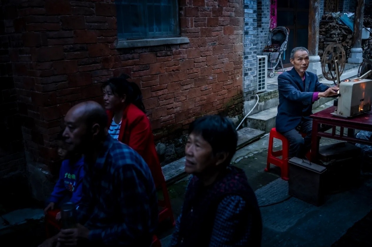 1983年,鄉(xiāng)里成立了電影放映隊(duì),曹毅成了隊(duì)長(zhǎng),還參加了電影培訓(xùn)班,扎扎實(shí)實(shí)地學(xué)了放映技術(shù)、電工等好多課程,成了專(zhuān)業(yè)的放映員。那時(shí)片源少,一張片子各個(gè)鄉(xiāng)排期輪流放映,讓曹毅最開(kāi)心的事,就是坐上幾個(gè)小時(shí)的公交車(chē)去縣里拿膠片。有時(shí)揣著膠片回來(lái)的路上就忍不住想樂(lè),哪回放新電影都像打仗一樣,人山人海,得防著別碰壞了放映機(jī),還得留心會(huì)有哪個(gè)村連夜來(lái)?yè)尫庞硻C(jī)?!翱傆幸蝗f(wàn)人,銀幕前后都是人,背面都有人看。在稻田里面把那稻子割完了以后,電影就在稻場(chǎng)里面放,不然地方不夠大?!笨諝庵酗h著稻谷的香味,不少人會(huì)盤(pán)腿坐在地上,扎扎實(shí)實(shí)看完一部電影。
