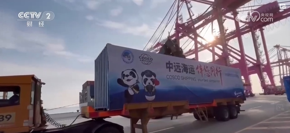 央視財(cái)經(jīng)記者 金荷淼:進(jìn)博會(huì)的吉祥物“進(jìn)寶”戴著的這條圍巾是黃藍(lán)相間的,黃色代表“絲綢之路經(jīng)濟(jì)帶”,藍(lán)色代表“21世紀(jì)海上絲綢之路”,這恰恰體現(xiàn)著進(jìn)博會(huì)與 “一帶一路”的密切聯(lián)系。今年“進(jìn)博號(hào)”中歐班列共發(fā)行3列,承運(yùn)貨值超過3.5億元人民幣,較上屆進(jìn)博會(huì)增長(zhǎng)近三倍。浦東機(jī)場(chǎng)貨運(yùn)站保障參會(huì)展品物資重量超20噸,較上屆進(jìn)博會(huì)增長(zhǎng)超五成。正是這一場(chǎng)場(chǎng)跨越萬里的接力賽,搖響了新時(shí)代國(guó)際貿(mào)易的“駝鈴”。