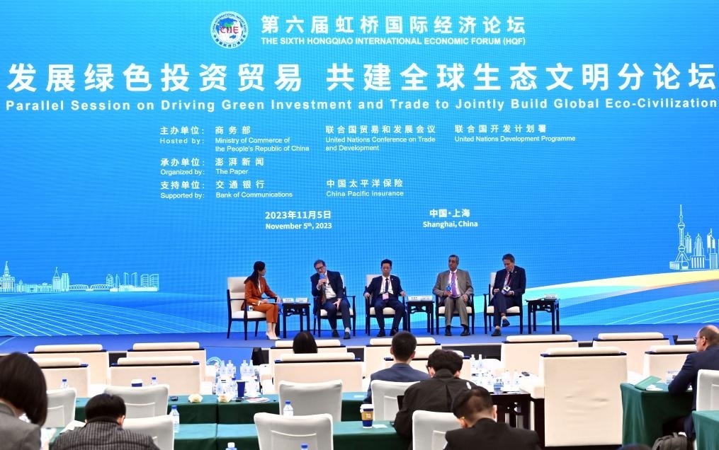 ?11月5日,第六屆虹橋國際經(jīng)濟論壇“發(fā)展綠色投資貿(mào)易 共建全球生態(tài)文明”分論壇在上海舉行。新華社記者 金良快 攝