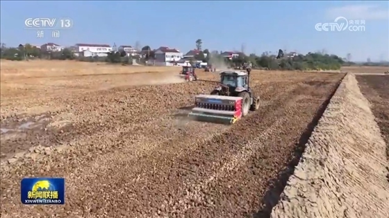 在安徽六安,高標準農(nóng)田大面積建成讓大型機械有了用武之地,這家合作社新增了6臺大型播種機,旋耕、施肥、冬小麥播種一次性完成。