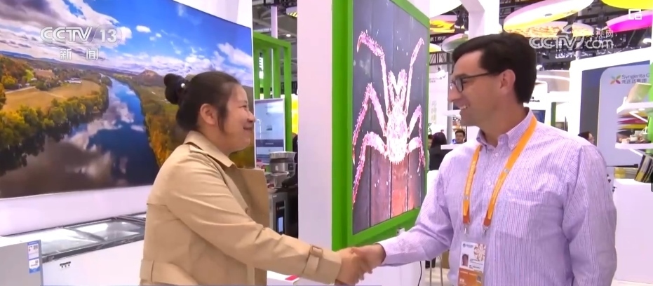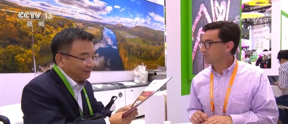 進(jìn)博會(huì)的最后一天,記者來(lái)到美國(guó)食品和農(nóng)產(chǎn)品館時(shí),美國(guó)參展商克里斯依舊在緊張地和客戶對(duì)接洽談,此時(shí)距離閉幕只剩下不到6個(gè)小時(shí)。