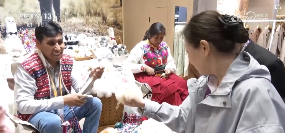 同樣是第一次到中國(guó)的,還有來(lái)自秘魯?shù)鸟R馬尼大叔。這其實(shí)已經(jīng)是他親手制作的羊駝第6次亮相進(jìn)博會(huì)。但是過(guò)去5年,他一直沒(méi)有機(jī)會(huì)親自來(lái)到現(xiàn)場(chǎng)。展臺(tái)上的小羊駝們這些年成了進(jìn)博會(huì)上的暢銷單品,也幫助遠(yuǎn)在秘魯?shù)?00多個(gè)家庭脫貧致富。來(lái)現(xiàn)場(chǎng)看看,成了馬馬尼大叔一直以來(lái)的愿望。