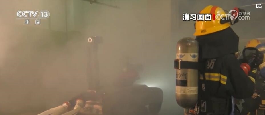 演習(xí)過程中,舉高噴射消防車從外部進(jìn)行滅火作業(yè)的同時(shí),多支消防救援小隊(duì)進(jìn)入商場內(nèi)部,在濃煙中實(shí)戰(zhàn)模擬火場搜救和滅火作戰(zhàn)。在救援人員的遙控指揮下,消防救援機(jī)器狗首先突入火場,利用身上加裝的煙氣成分分析儀、攝像頭等多種設(shè)備,實(shí)時(shí)監(jiān)測環(huán)境危險(xiǎn)狀況,并對(duì)火場環(huán)境進(jìn)行偵察。在大火猛烈燃燒、建筑物結(jié)構(gòu)不穩(wěn)定情況下,消防救援人員遠(yuǎn)程控制無人滅火機(jī)器人首先進(jìn)入火場,進(jìn)行前期滅火作業(yè)。為保障內(nèi)攻救援人員安全,消防員綜合定位系統(tǒng)也投入使用。每名消防員都攜帶平板終端和定位信標(biāo),指揮員可以實(shí)時(shí)掌握進(jìn)入火場人員的生命體征、實(shí)時(shí)位置。一旦救援人員遇險(xiǎn),系統(tǒng)能夠第一時(shí)間引導(dǎo)緊急救援小組展開營救行動(dòng)。