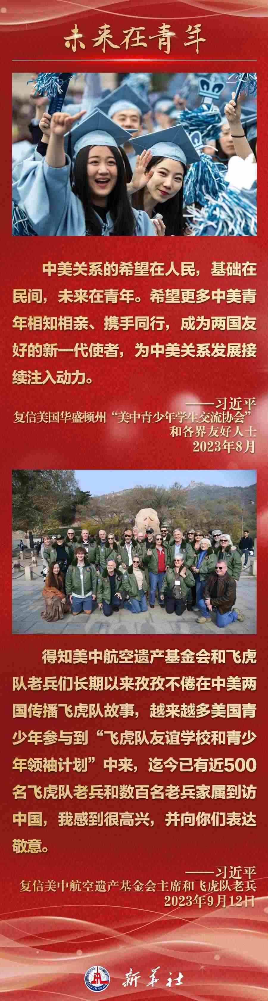 今年以來(lái),從在京會(huì)見(jiàn)美國(guó)各界人士,到向“鼓嶺緣”中美民間友好論壇等活動(dòng)致賀信,再到復(fù)信美國(guó)華盛頓州“美中青少年學(xué)生交流協(xié)會(huì)”、史迪威將軍后人、飛虎隊(duì)老兵等友好人士,習(xí)近平主席同美國(guó)各界真摯互動(dòng),強(qiáng)調(diào)中美關(guān)系基礎(chǔ)在民間,希望在人民,未來(lái)在青年,活力在地方。