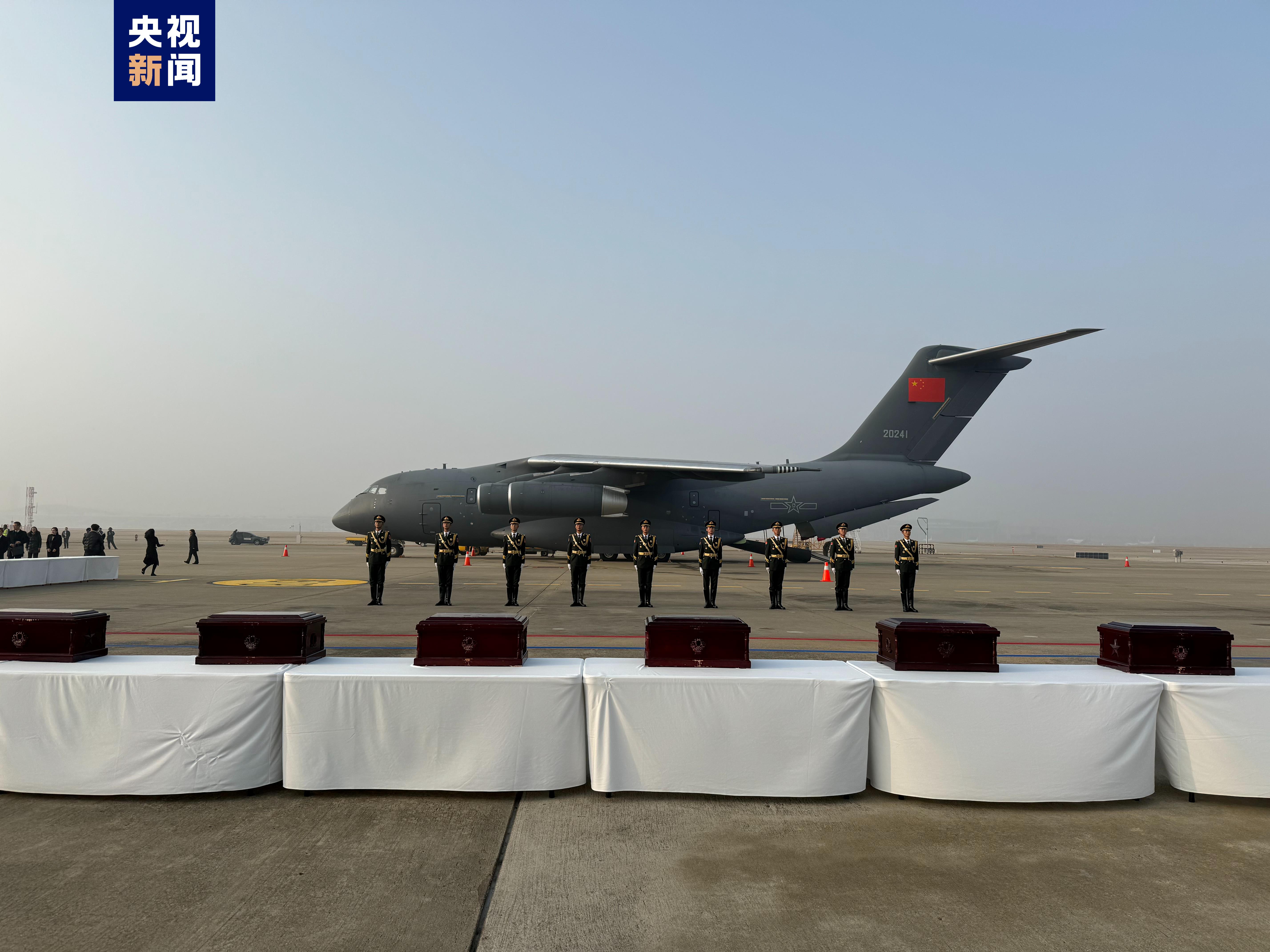 當(dāng)?shù)貢r間23日上午,中韓雙方在韓國仁川國際機場舉行第十批在韓中國人民志愿軍烈士遺骸及遺物交接儀式。此次韓方共向中方移交25名中國人民志愿軍烈士遺骸及335件遺物,交接儀式后烈士遺骸將搭乘中國空軍運-20專機返回祖國。