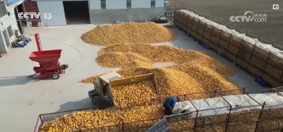 “小雪”節(jié)氣過后,山東濟南平陰縣的秋收接近尾聲,又到了儲糧的時節(jié)。當(dāng)?shù)馗鱾€村子里家家戶戶的“苞米樓子”拔地而起,成為農(nóng)民的儲糧“神器”。這兩天,平陰縣孝直鎮(zhèn)中聯(lián)村種糧大戶李明海開動鏟車,將一穗穗玉米棒運轉(zhuǎn)到儲糧倉里,遠遠望去一片金黃,上百萬斤玉米塞得滿滿當(dāng)當(dāng)。