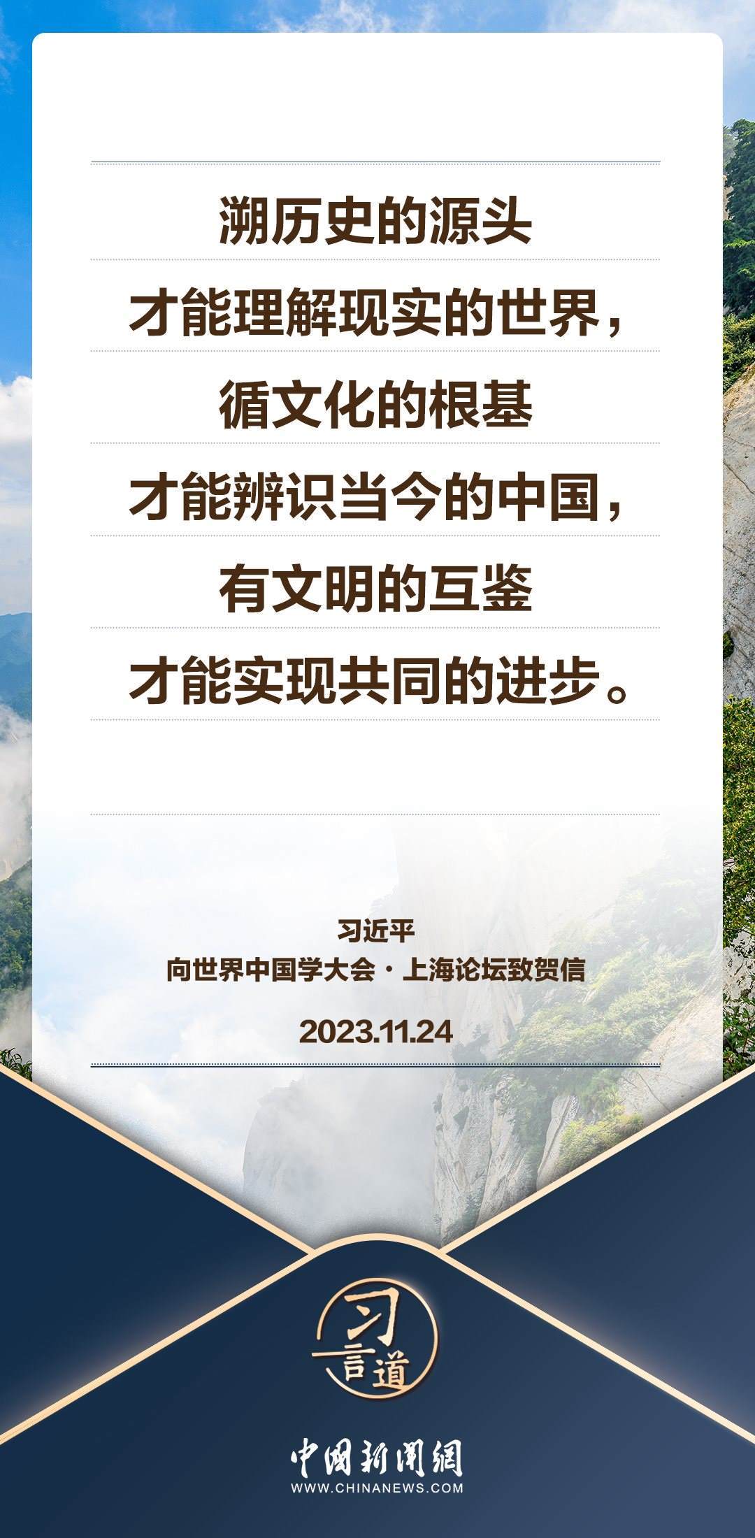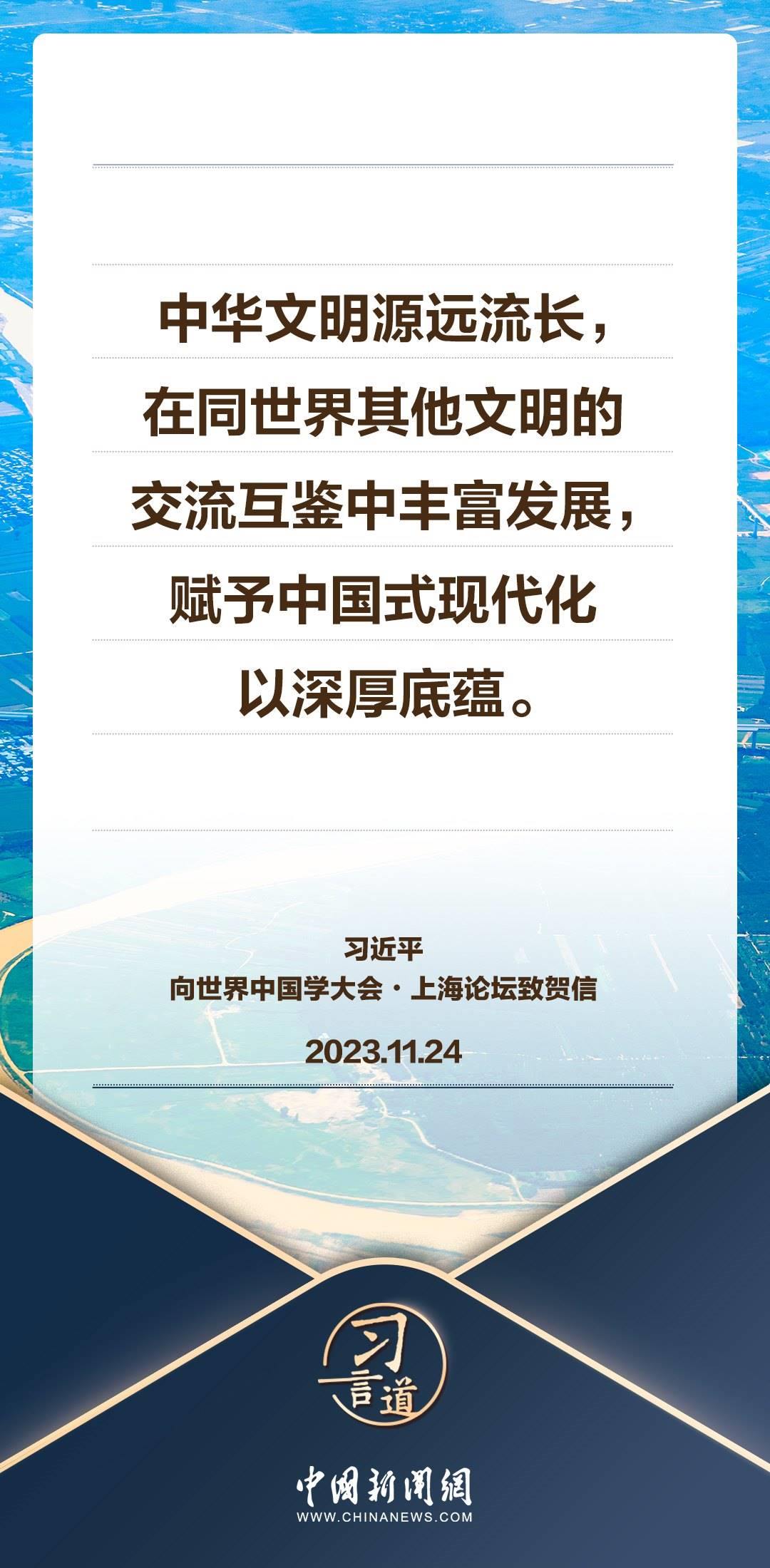 11月24日,國家主席習近平向世界中國學大會 上海論壇致賀信。習近平指出——