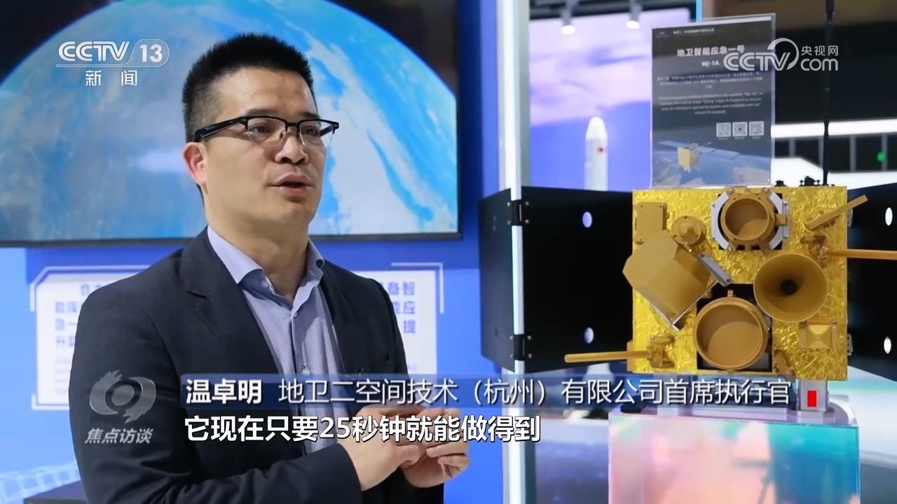 地衛(wèi)二空間技術(杭州)有限公司首席執(zhí)行官溫卓明:“這是一個聰明的衛(wèi)星,傳統(tǒng)的衛(wèi)星6個小時才能干完的事情,它只要25秒鐘就能做得到,而且原來可能要5000個工程師干的活,現(xiàn)在1個小時它就能做完。它是怎么能做到的?因為我們把人工智能放到了太空。”