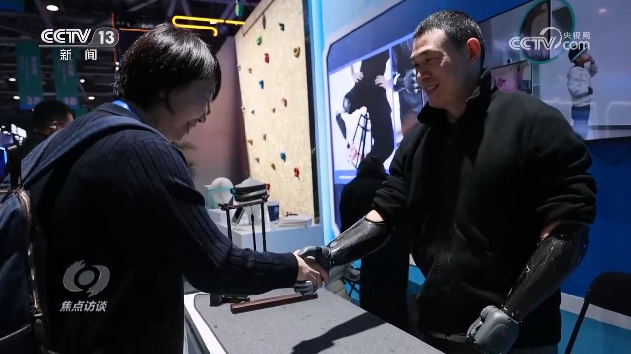 博覽會現(xiàn)場,一位坐在角落里的中年男子引起了我們的注意。他叫倪敏成,九歲時因為意外失去雙手,但讓他更感意外的是,30年后,腦機接口技術讓他重新?lián)碛辛艘浑p智能仿生手。