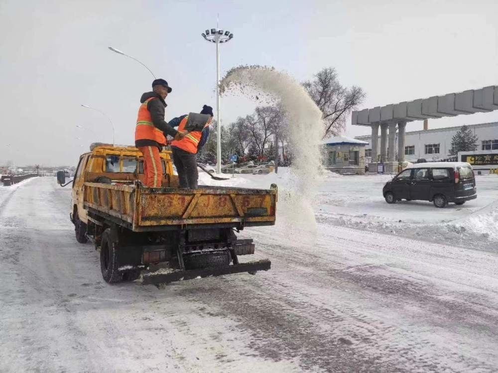 在雞西市,養(yǎng)路工人在進(jìn)行清雪作業(yè)。受訪(fǎng)者供圖