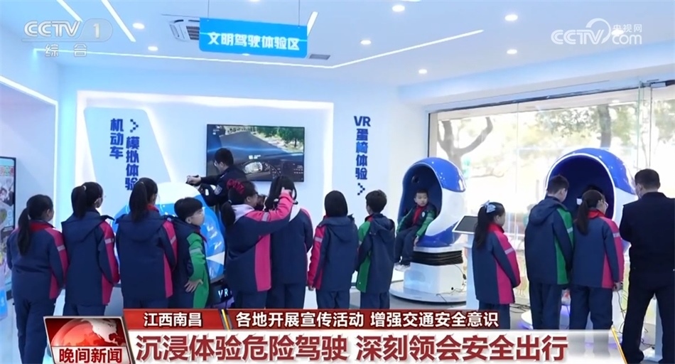 在江西南昌公安交通治理體驗(yàn)中心,來(lái)自南昌市郵政路小學(xué)的同學(xué)們?cè)诿窬膸ьI(lǐng)下,開(kāi)展了一堂別開(kāi)生面的交通安全課。大家戴上VR設(shè)備,通過(guò)機(jī)動(dòng)車模擬駕駛、交通事故模擬裝置等,沉浸式體驗(yàn)了酒駕醉駕、超速等交通違法行為的場(chǎng)景?;蝿?dòng)的座椅給同學(xué)們帶來(lái)了事故撞擊的震感,旋轉(zhuǎn)的設(shè)備更是讓同學(xué)們身臨其境地感受到酒后駕駛的眩暈。
