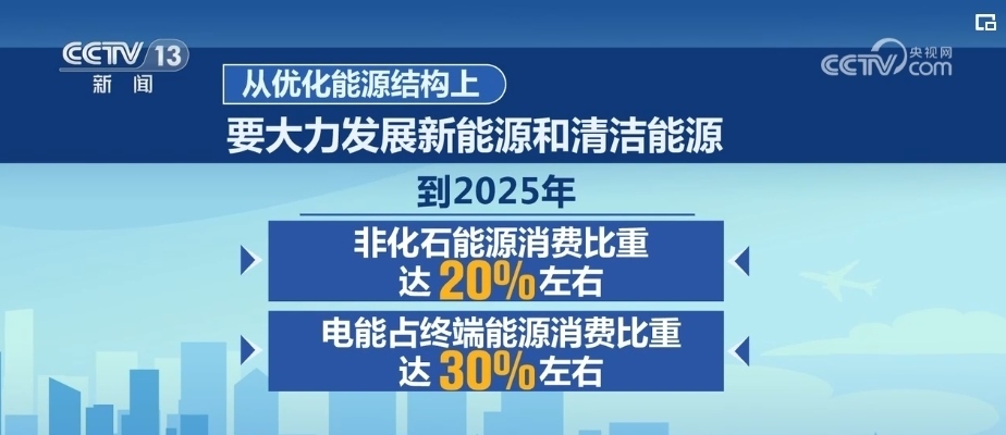 從優(yōu)化能源結(jié)構(gòu)上,要大力發(fā)展新能源和清潔能源。到2025年,非化石能源消費比重達20%左右,電能占終端能源消費比重達30%左右。持續(xù)增加天然氣生產(chǎn)供應,新增天然氣優(yōu)先保障居民生活和清潔取暖需求。