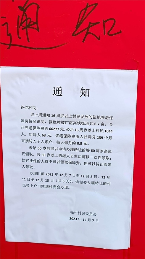 ·廣東一村發(fā)征地養(yǎng)老保障費(fèi)每人每月0.5元?村委會回應(yīng)稱錢少人多。
