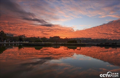 2023年12月7日清晨,云南曲靖上空出現(xiàn)火燒云景觀。