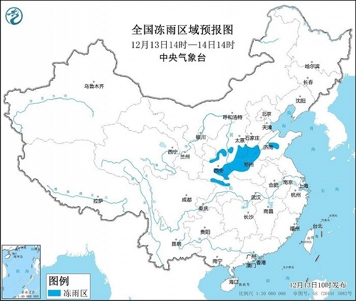 預(yù)計,12月13日14時至14日14時,陜北南部和秦嶺東部、山西南部、河南北部和西部、河北南部、山東中部、湖北西北部等地的部分地區(qū)有凍雨。