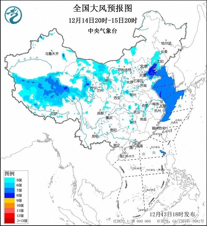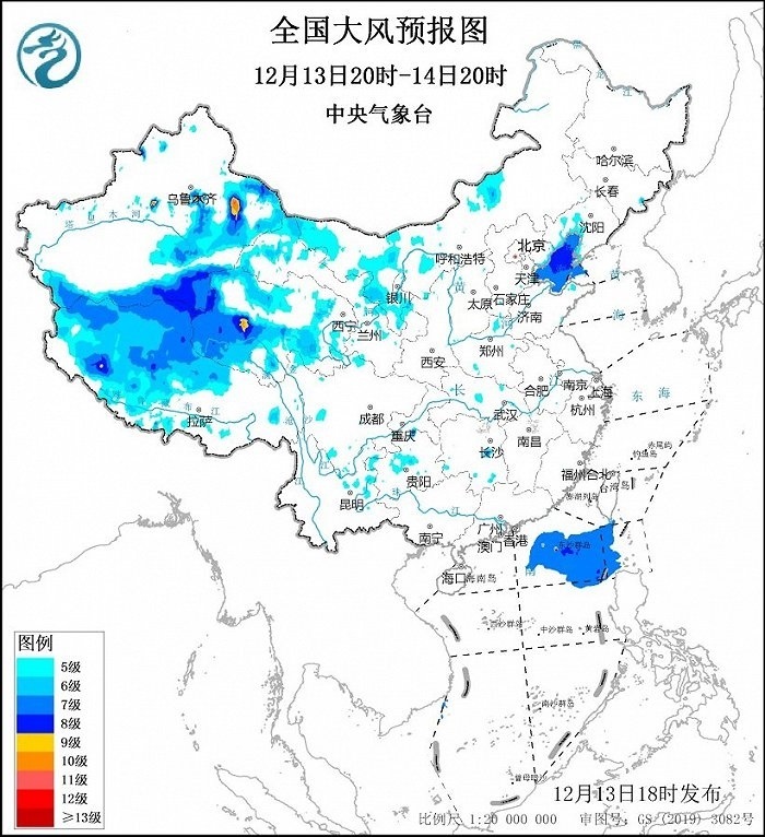 中央氣象臺12月13日18時發(fā)布大風(fēng)藍(lán)色預(yù)警: