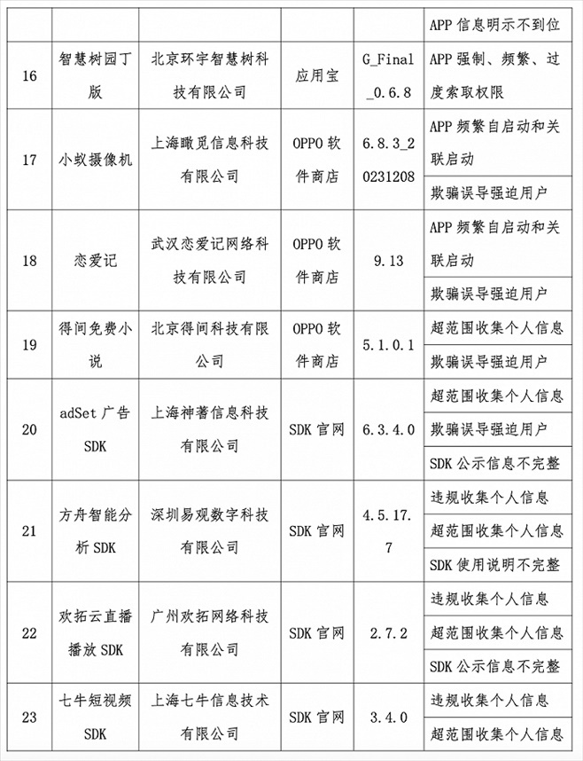 央視網(wǎng)消息:據(jù)工信部網(wǎng)站消息,近期,工信部組織第三方檢測(cè)機(jī)構(gòu)對(duì)群眾關(guān)注的實(shí)用工具、本地生活、網(wǎng)絡(luò)游戲等移動(dòng)互聯(lián)網(wǎng)應(yīng)用程序(APP)及第三方軟件開發(fā)工具包(SDK)進(jìn)行檢查。發(fā)現(xiàn)24款A(yù)PP、SDK存在侵害用戶權(quán)益行為,現(xiàn)予以通報(bào)。
