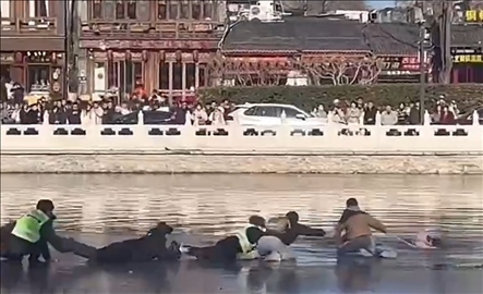 ·北京什剎海一兒童不慎落水,眾人接力成功救援。