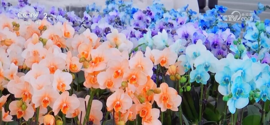 為了滿足市場(chǎng)需求,該基地還推出“活體染色”蝴蝶蘭,讓其根莖在生長(zhǎng)時(shí)吸收足夠多的天然色素,從而花瓣呈現(xiàn)出藍(lán)色、橙色等各種色彩。