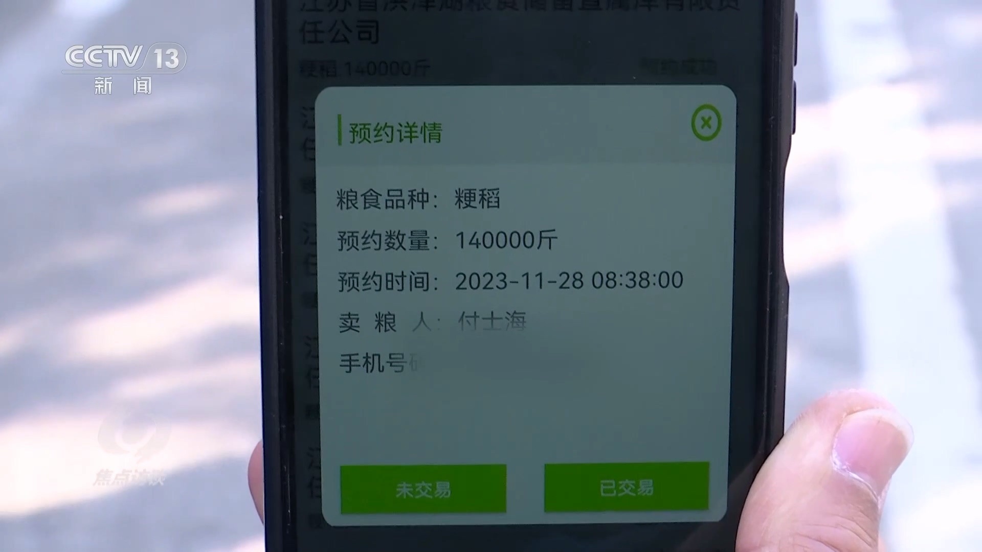 在江蘇省糧食部門(mén)研發(fā)的這個(gè)“滿意蘇糧”應(yīng)用程序里,不僅能夠?qū)崟r(shí)查詢收購(gòu)價(jià)格、糧庫(kù)倉(cāng)容狀態(tài),還能預(yù)約賣(mài)糧。通過(guò)手機(jī)看到這幾天的價(jià)格比較合適,付士海也準(zhǔn)備將自己的糧食出手了。