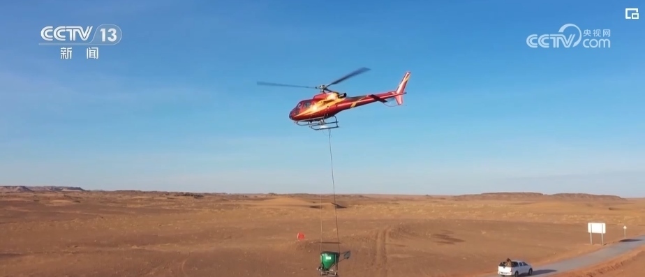 在內(nèi)蒙古烏拉特后旗瑪瑙湖的上空,每天都有兩架直升機(jī)輪番作業(yè),每天大概飛播20多噸種子。陰山北麓烏拉特后旗2023年度生態(tài)綜合治理項(xiàng)目是三北工程的一部分,在2023年7月開始施工,計(jì)劃在2024年2月底完成生態(tài)修復(fù)治理面積約為77.44萬(wàn)畝。