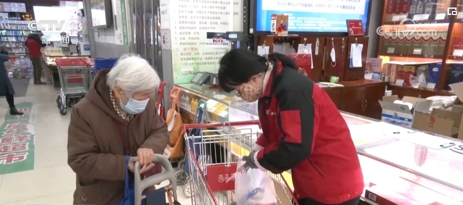 早上8時,社區(qū)附近的東單菜市場開門營業(yè)。87歲的曹奶奶今天用積分換了很多東西,菜市場的工作人員提出免費幫她送到家里。