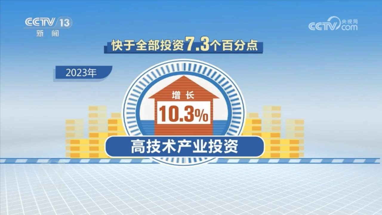在投資領(lǐng)域,受房地產(chǎn)市場深度調(diào)整影響,2023年全年全國固定資產(chǎn)投資比上一年增長3%,而扣除房地產(chǎn)開發(fā)投資,民間投資增長9.2%。尤為值得注意的是,2023年高技術(shù)產(chǎn)業(yè)投資增長10.3%,快于全部投資7.3個百分點。其中,高技術(shù)制造業(yè)、高技術(shù)服務(wù)業(yè)投資分別增長9.9%、11.4%。