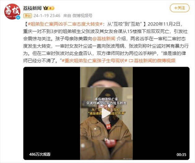·重慶姐弟墜亡案孩子母親陳美霖近日向媒體介紹,兩名兇手在一審和二審時態(tài)度發(fā)生大轉變,一審時女友葉塵誠一直向張波甩鍋,張波則稱葉塵誠對其有暴力行為。但在二審時張波對此全盤否認,雙方律師同時為兩位兇手辯護,“誰是誰的律師已經分不清了?!?/p>