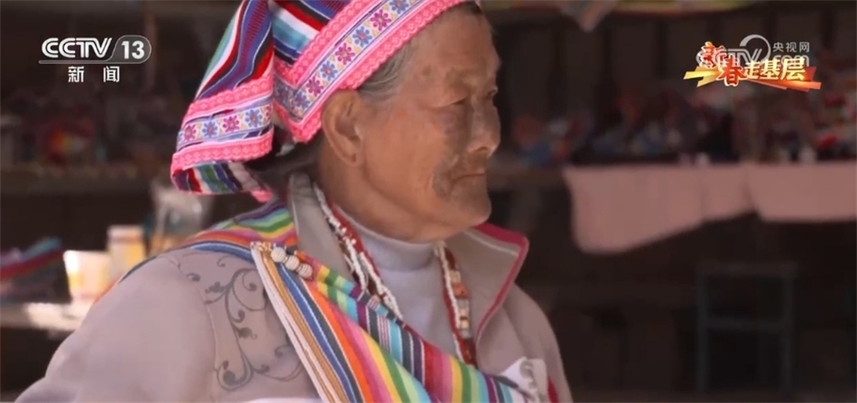 現(xiàn)在獨(dú)龍江鄉(xiāng),近千位獨(dú)龍族婦女和她一樣,在用傳統(tǒng)的方式編織著走向世界的獨(dú)龍?zhí)?,李文仕奶奶就是其中之一,她是目前?dú)龍族僅有的17位文面女中的一位。當(dāng)記者找到她時(shí),老奶奶正在熟練得玩手機(jī)。自從2022年5G網(wǎng)絡(luò)覆蓋了獨(dú)龍江鄉(xiāng)的6個(gè)行政村后,李文仕奶奶除了務(wù)農(nóng)織布、唱歌跳舞,還培養(yǎng)了一個(gè)新的愛好,就是網(wǎng)上沖浪。