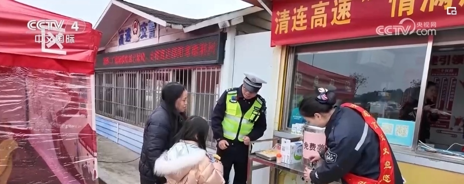 春運期間,廣東清遠市公安局在全市范圍內(nèi)設(shè)置了34個春運暖心服務(wù)點?,F(xiàn)場工作人員除了提醒引導廣大司乘人員嚴格遵守交規(guī),共同打造安全、暢通的高速公路通行環(huán)境之外,還對在服務(wù)區(qū)內(nèi)休整的司乘人員免費提供暖心服務(wù),打造溫暖春運路。