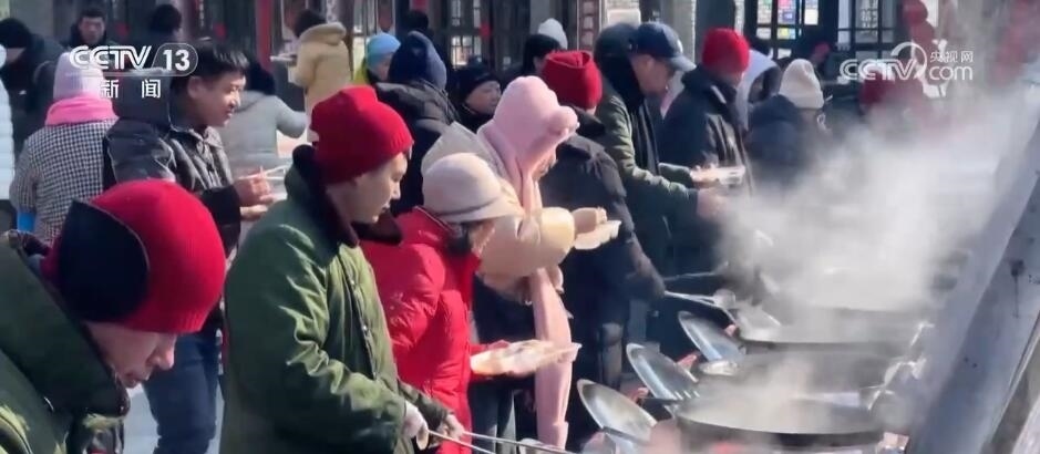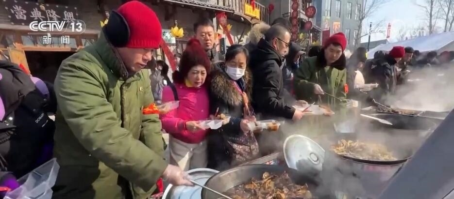 總臺(tái)記者 王亞平:我現(xiàn)在就是在長(zhǎng)春市蓮花島年貨大集。這會(huì)兒大集上香氣撲鼻,每口鐵鍋前都圍滿(mǎn)了品嘗美味的人們。室外冒著寒氣,食客嘴里吐著哈氣,用東北話(huà)講,吃得“嘎嘎香”。