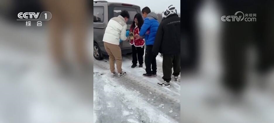 湖北荊門:高速公路車輛滯留 暖心服務(wù)保障司乘人員