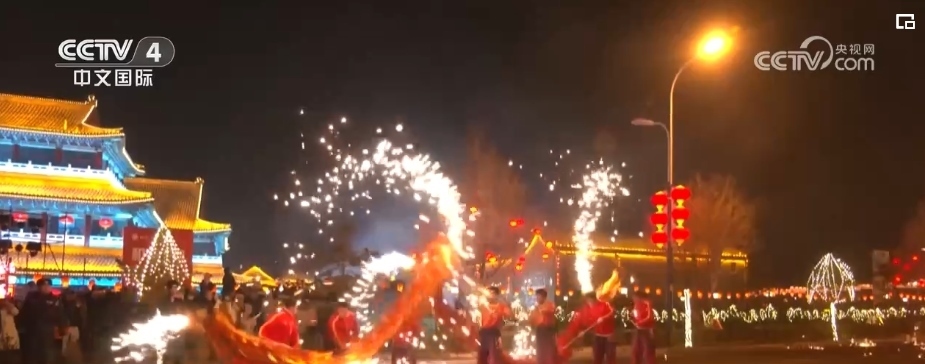 春節(jié)臨近,內(nèi)蒙古烏蘭察布古城新春燈會(huì)也正式開燈。栩栩如生的巨型花燈構(gòu)成璀璨燈海,彩燈與古色古香的建筑交相輝映,形成恢弘壯美、流光溢彩的美麗景象?,F(xiàn)場(chǎng)打鐵花、舞火龍、煙花秀等民俗活動(dòng)輪番上演,令游客流連忘返。