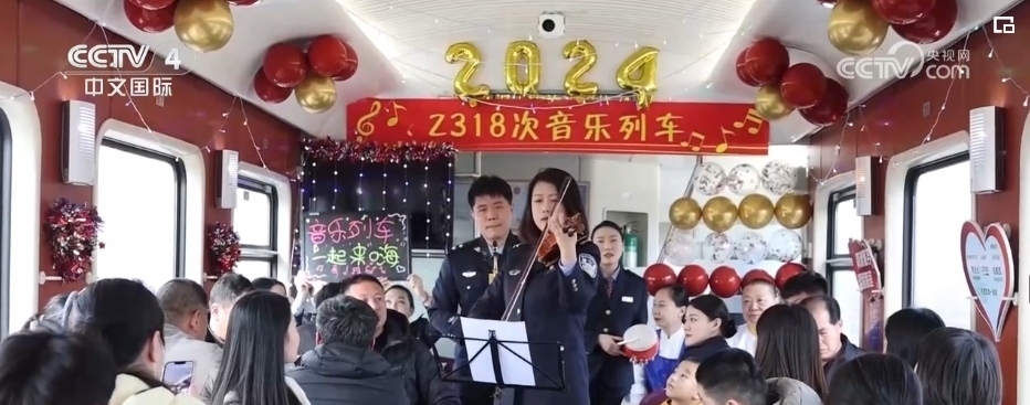 隨著春節(jié)臨近,在外務(wù)工的游子們紛紛踏上了回家的旅途。在青島北開往成都西Z318次列車上,悅耳歡快旋律響起,列車工作人員邀請(qǐng)3位學(xué)生旅客,為大家演奏了悠揚(yáng)歡快的樂(lè)曲。