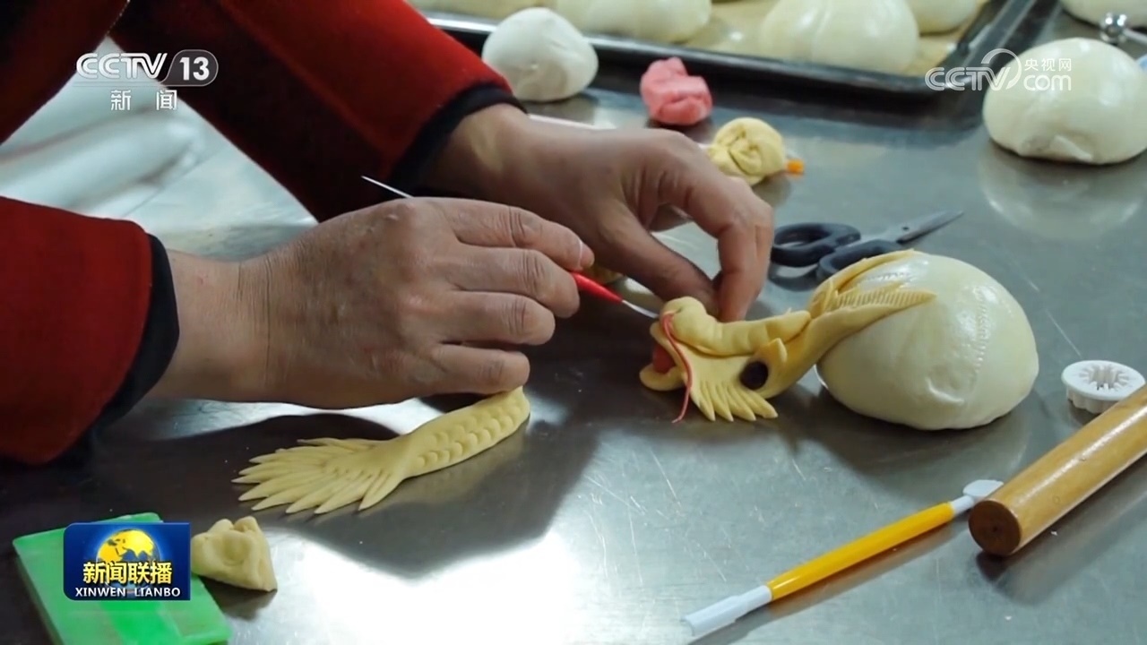 這幾天,黑龍江虎林、四川北川等地,人們蒸花饃,炸油馃,備年貨,好是熱鬧。在陜西韓城,一塊普通的面團(tuán),在村民的巧手里制作出一條條惟妙惟肖的“龍”造型花饃;在山西長治,鄉(xiāng)親們聚在一起,揉面、捏花,熱氣騰騰的棗饃為春節(jié)增加了甜蜜和喜慶。在遼寧沈陽,家家戶戶發(fā)面烀豆餡,包出的圓滾滾的黏豆包,寓意著新年蒸蒸日上。在甘肅張掖,大家忙著炸麻花、炸油馃,制作各式各樣的特色春節(jié)美食。