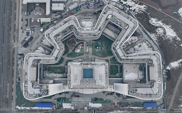 這是位于雄安新區(qū)啟動(dòng)區(qū)內(nèi)的中國(guó)衛(wèi)星網(wǎng)絡(luò)集團(tuán)有限公司總部大樓建設(shè)現(xiàn)場(chǎng)(2024年1月31日攝,無人機(jī)照片)。新華社記者 牟宇 攝