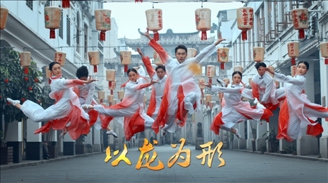 “有一條龍,藏在心里”,一招一式,以龍為形,以舞蹈之美勾畫(huà)武術(shù)之韻。武舞同源,形意相融,通過(guò)精巧的舞蹈造型設(shè)計(jì),將龍形拳與現(xiàn)代舞相結(jié)合。龍形拳的剛勁有力與現(xiàn)代舞的優(yōu)雅美感同步上演。以意為神、以氣催勁、內(nèi)外合一,完美演繹出龍的身姿。