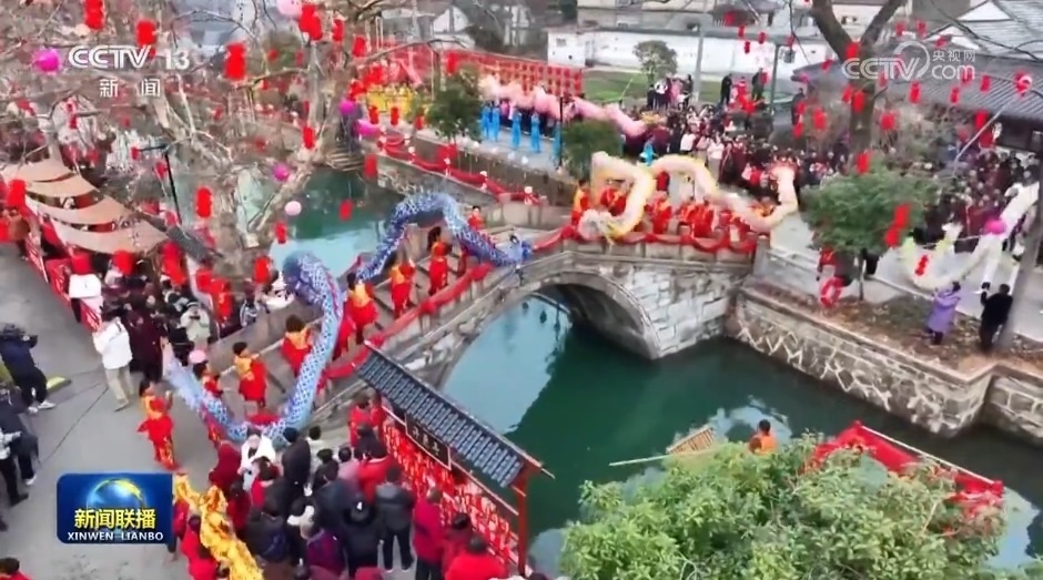 龍騰盛世,鑼鼓喧天。在安徽潁上,在浙江長興,舞龍表演隊沿街巡游,為百姓送去新春祝福。在江蘇宿遷,充滿年味的民俗表演將新春的氛圍拉滿。在云南昆明,彝族、哈尼族、瑤族、傣族等不同民族的特色鼓舞表演,場面熱烈奔放。今天也是藏歷新年的大年初一,在西藏日喀則、山南等地,人們身著節(jié)日盛裝,品美食、做游戲、唱歌跳舞,熱熱鬧鬧過大年。