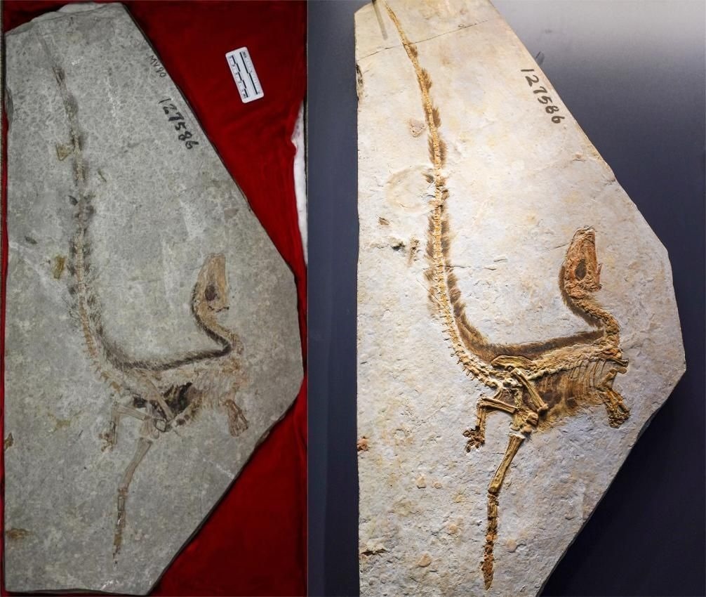 ·這只“明星恐龍”生活在距今1.25億年前,化石于1995年在我國遼寧被發(fā)現(xiàn)。中華龍鳥最令人震驚的是化石上保存完好的“羽毛”。這是人類第一次發(fā)現(xiàn)明確的帶羽毛的恐龍化石,最早的研究者們認為這可能是一種長相酷似恐龍的“鳥”,因此給它起名“原始中華龍鳥”。
